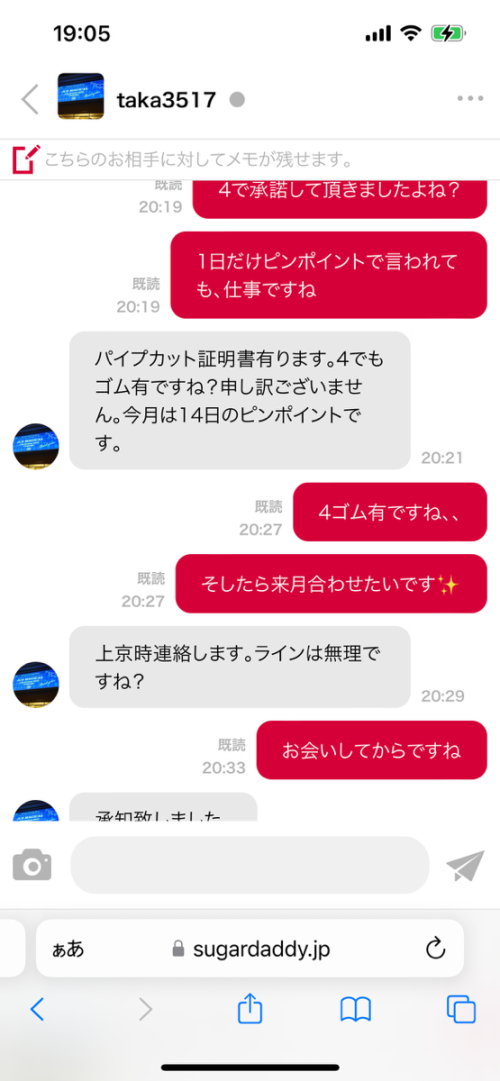 ボケてんのかしつこいのか。4でゴム有貫いたし、このあとまた日程提示してきて行ける日だったから実際大人してきたの。