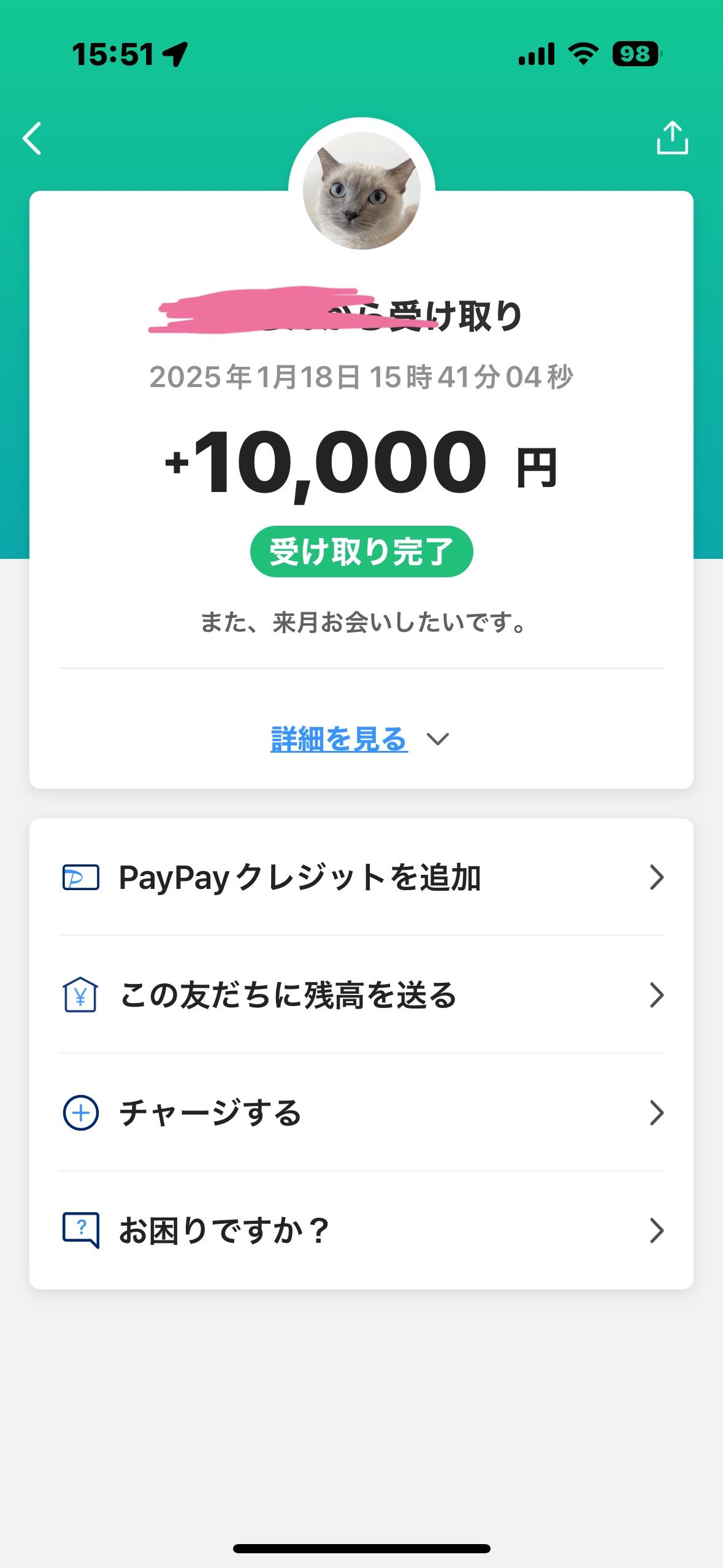 こないだ二回目pとお食事だったけど朝からpさんが体調不良で本日キャンセルの連絡が、、😭 お手当1が消えた、、とちょっとがっかりしてたら謝礼としてPayPayで1丸々きててびっくり! 最近しつこいpばっかで萎えてたけどこういう太っ腹pはちゃんと大事にしようと心に決めました(こういうpほど意外とあっさりしてるから有難い)