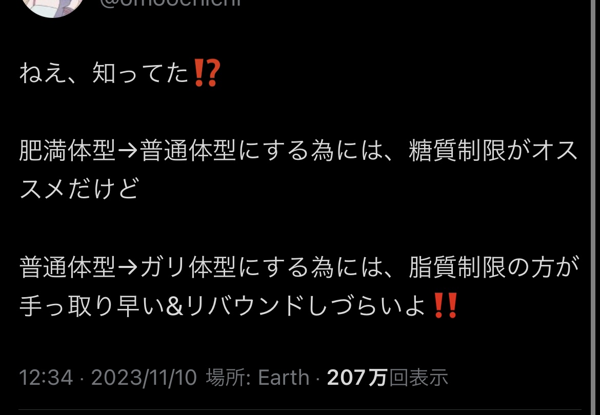 Twitterでから流れて来て、今まで私に糖質制限勧めて来た人は私を肥満って思ってて、脂質制限勧めて来た人は普通って思ってるのかなって考えちゃった😇 我ながらひねくれてるーー こんなこと考えないかわいい性格に生まれたかったなー Pといる時はひねくれるどころかそもそもまともに話そうと思ってないから、まだひねくれてるね!と言われたことはない。 言ってくる人いたらやばいけど笑笑 今日🍽️2件予定あって、生理中で食欲無いのにだるって思ってたら一人「雨のせいで家族といなきゃいけなくなったから、行けないごめん。」ってライン来てpaypay2万送られてた笑笑 理由めっちゃ謎だけどいぇーい! 雨ナイス👍🏻(謎)