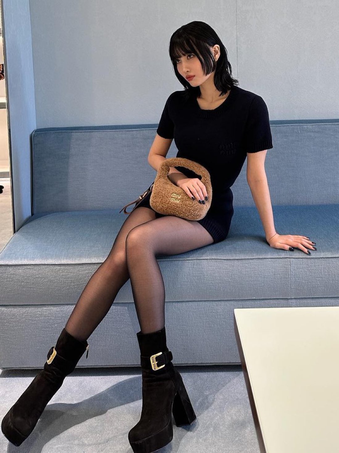 この日のももちゃん天使すぎる 流石にやばい 姫カットやっぱり最強だし、スタイル良すぎない??😭💖💖💖 あああほんとにかわいいよ生きててくれてありがとう 単純なので、ハイブラは圧倒的miumiu派になりました🥹
