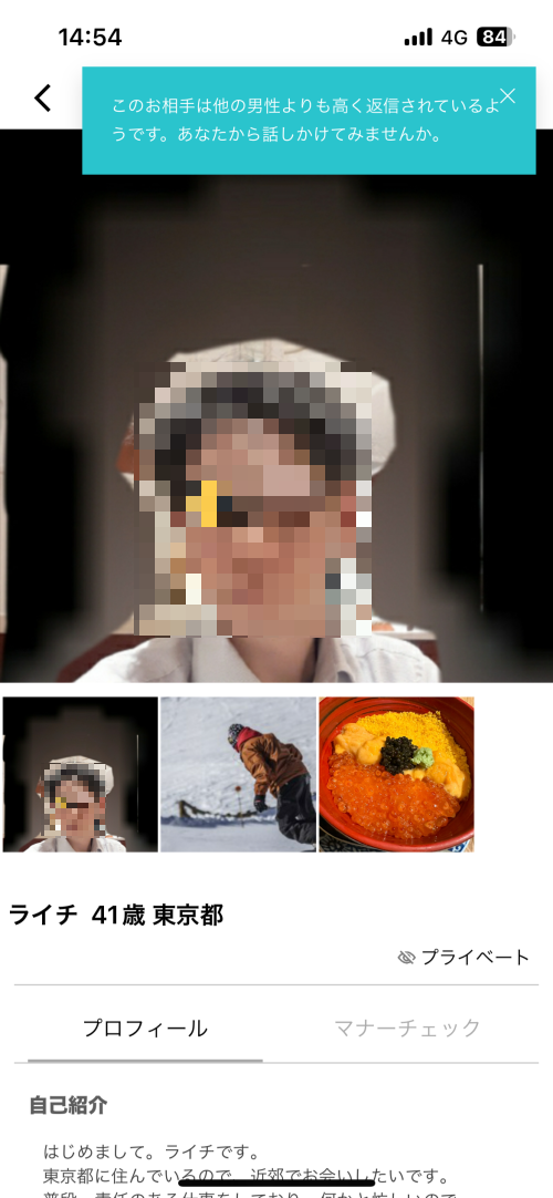 この男性の口コミを書くには、無料会員登録が必要です。口コミを書くと、全ての口コミをモザイク無しで読むことが出来ます。